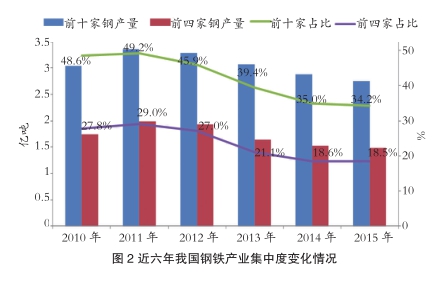 2015年我國鋼鐵產(chǎn)業(yè)集中度進(jìn)一步下滑