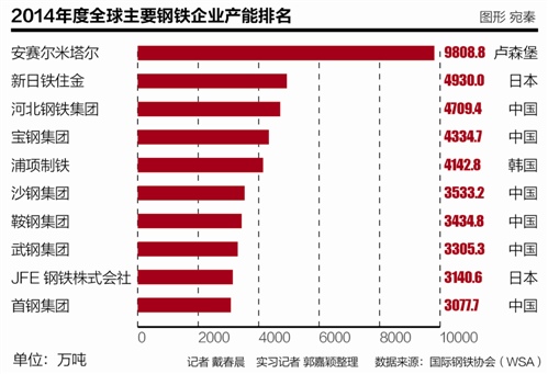 這也意味著,湛江項目或防城港項目,粗略估算在1000萬噸之間。根據(jù)全球鋼鐵企業(yè)協(xié)會的2014年產(chǎn)能排名,兩個鋼鐵項目全線投產(chǎn)后,可以排到全球40名左右水平。