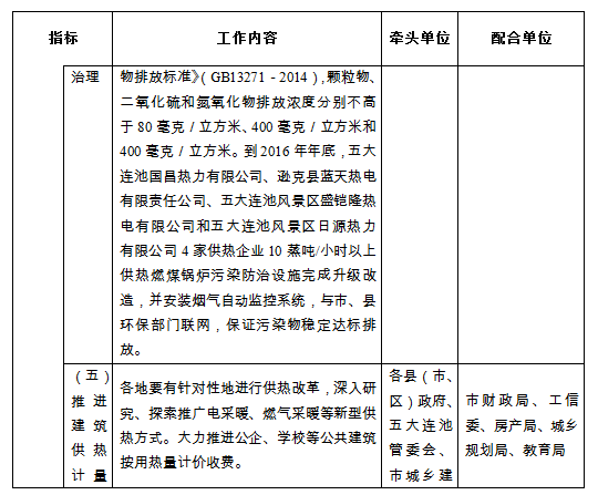 3.淘汰分散小鍋爐。市城鄉(xiāng)建設(shè)局會同市環(huán)保局負責(zé)燃煤小鍋爐淘汰工作。到2017年年底,除保留必要的應(yīng)急、調(diào)峰供熱鍋爐外,全部淘汰城市(含縣級)建成區(qū)內(nèi)10蒸噸/小時及以下燃煤鍋爐,城市建成區(qū)禁止新建每小時20蒸噸以下的燃煤鍋爐;各縣(市)建成區(qū)原則上不再新建每小時10蒸噸以下的燃煤鍋爐。市城鄉(xiāng)建設(shè)局負責(zé)推進集中供熱工程項目建設(shè),加快完善熱網(wǎng)和熱源基礎(chǔ)設(shè)施建設(shè)及供熱老舊管網(wǎng)改造,擴大集中供熱面積,拆除具備供熱并網(wǎng)條件的10蒸噸/小時以下燃煤供熱鍋爐。到2018年年底,全市城市(含縣級)建成區(qū)集中供熱普及率達到80%以上。到2017年年底,已批準的7個工業(yè)園區(qū)基本實現(xiàn)集中供熱。