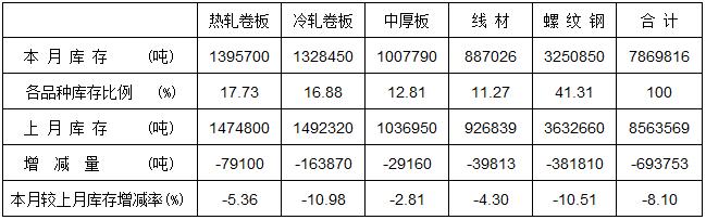 具體鋼材品種庫存情況如下: