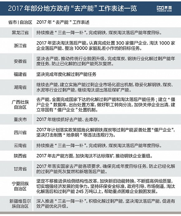 有13個(gè)省市在2017年政府工作報(bào)告中公布了今年“去產(chǎn)能”具體目標(biāo)。