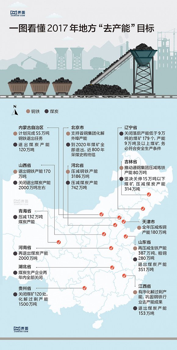 盡管目前全國(guó)鋼鐵、煤炭“去產(chǎn)能”方案尚未出臺(tái),但地方“兩會(huì)”相繼召開(kāi),多省份在總結(jié)2016年去產(chǎn)能工作的基礎(chǔ)上,明確了2017年鋼鐵和煤炭的去產(chǎn)能目標(biāo)。