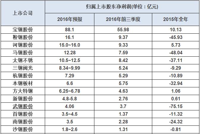 2016年鋼鐵上市公司業(yè)績(jī)預(yù)告統(tǒng)計(jì)
