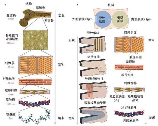 人骨的微觀結(jié)構(gòu)及其阻止裂紋萌生的機(jī)理示意圖