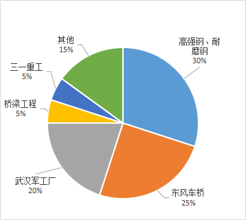 近年來,由于經(jīng)濟(jì)形勢的變化,政府貨幣政策由寬轉(zhuǎn)嚴(yán),使得市場熱錢逐漸退市,貿(mào)易商訂貨規(guī)模逐漸縮小,且不少鋼廠也對需求偏弱的品種進(jìn)行一定程度的減產(chǎn)。隨著鋼鐵行業(yè)進(jìn)入低谷階段,產(chǎn)能過剩導(dǎo)致鋼企利潤空間被壓縮至負(fù)數(shù)。為化解產(chǎn)能過剩、提高行業(yè)的集中度,2016年,武鋼集團(tuán)和寶鋼集團(tuán)合并重組為寶武鋼鐵集團(tuán)。在去產(chǎn)能、調(diào)結(jié)構(gòu)的過程中,武鋼中板產(chǎn)線產(chǎn)量也在逐漸減少。同時,隨著造船產(chǎn)能過剩,造船行業(yè)長期處于供過于求狀態(tài)。去年7月,武鋼中厚板廠軋線產(chǎn)量更是由每月2萬噸的量減產(chǎn)至1萬噸/月,本次主要減少了造船板等品種產(chǎn)量,減產(chǎn)后武鋼中板市場主要投放占比情況如下: