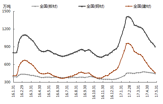 『 簡要:2017年5月份,國內(nèi)鋼鐵市場呈現(xiàn)震蕩反彈行情;進(jìn)口鐵礦石和焦炭價(jià)格回調(diào)使得成本對后期鋼價(jià)的支撐力度繼續(xù)減弱;目前鋼材庫存特別是建筑鋼材庫存處于低位,去庫存速度遠(yuǎn)高于往年,對于市場起到較大支撐作用;但6月份因季節(jié)性因素,鋼鐵需求或?qū)⒂兴D(zhuǎn)淡;預(yù)計(jì)6月份國內(nèi)鋼鐵市場呈高位回調(diào)態(tài)勢?!?/font>