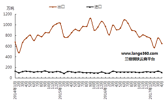 5月份,美國針對我國冷拔機(jī)械管、馬來西亞針對我國冷軋不銹鋼發(fā)起反傾銷調(diào)查,據(jù)蘭格鋼鐵研究中心監(jiān)測數(shù)據(jù)顯示,2017年前5個(gè)月,其他國家對我國鋼鐵產(chǎn)品發(fā)起貿(mào)易救濟(jì)調(diào)查僅7起,較去年同期減少14起。2017年鋼材出口下滑一方面是源于去年發(fā)起調(diào)查案件開始征稅,另外源于國內(nèi)鋼材價(jià)格上漲,出口價(jià)格攀升,導(dǎo)致出口價(jià)格競爭優(yōu)勢下滑,2016年以來我國鋼材進(jìn)出口均價(jià)價(jià)差逐步收窄,4月份已回落到360美元/噸,預(yù)計(jì)后期鋼材出口仍顯疲軟;2017年我國鋼材出口或出現(xiàn)較大幅度回落,全年鋼材出口或?qū)⒃?500萬噸左右。