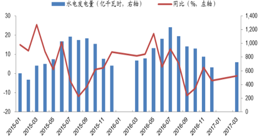 16 年下半年來水減少,水電發(fā)電量下降。預(yù)測難度較大,簡單假設(shè)二季度水電增速和一季度持平,則發(fā)電量 2647 億千瓦時(shí),同比-4.7%。