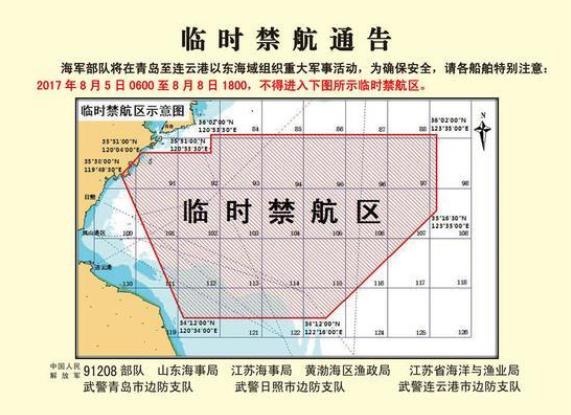 圖2 8月5日6時(shí)至8日18時(shí)黃海禁航區(qū)域
