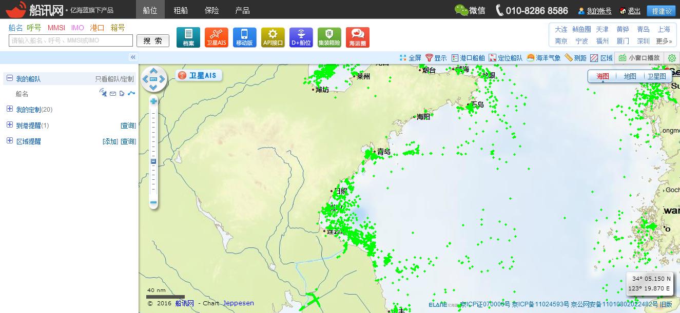 圖3 船訊網(wǎng)顯示軍演期間黃海海域附近的船舶