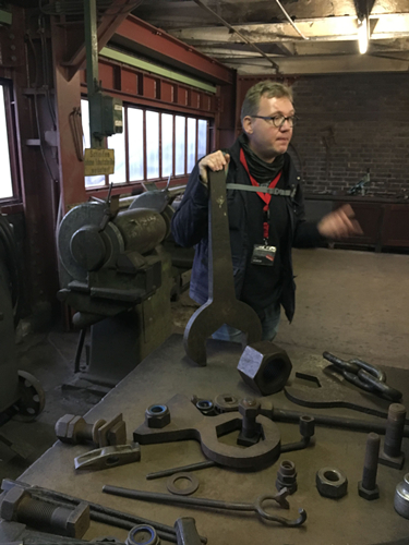 講解員正在展示當(dāng)時(shí)礦井機(jī)械師修理機(jī)器的工具
