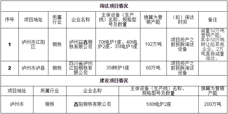 為深化供給側結構性改革,推動鋼鐵行業(yè)結構調整、轉型升級,按照《國務院關于化解產(chǎn)能嚴重過剩矛盾的指導意見》(國發(fā)〔2013〕41號)、《國務院關于鋼鐵行業(yè)化解過剩產(chǎn)能實現(xiàn)脫困發(fā)展的意見》(國發(fā)〔2016〕6號)和《工業(yè)和信息化部關于印發(fā)部分產(chǎn)能嚴重過剩行業(yè)產(chǎn)能置換實施辦法的通知》(工信部產(chǎn)業(yè)〔2015〕127號)的規(guī)定和要求,瀘州益鑫鋼鐵有限公司、四川省瀘州江陽鋼鐵有限公司擬重組整合,組建鑫陽鋼鐵有限公司(暫定名,以工商登記注冊為準,下同),并對現(xiàn)有冶煉裝備進行升級改造?,F(xiàn)將鑫陽鋼鐵有限公司重組改造建設項目產(chǎn)能置換方案予以公示,歡迎社會公眾進行監(jiān)督。公示期為:2017年12月4日-12月8日。若對公示內(nèi)容有異議,請在公示期內(nèi)以書面形式實名向瀘州市經(jīng)濟和信息化委員會反映。
