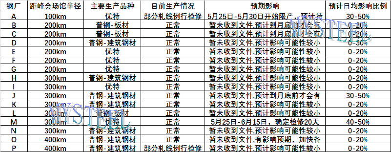 近期有傳言臨沂、淄博地區(qū)鋼鐵生產企業(yè)會有30天的停產行為。但據(jù)Mysteel調研,生產企業(yè)集中限產或停產預計在5月25日-6月15日,周期約20日,且大部分鋼企并未收到明確文件表示限產,預計最終影響有限。