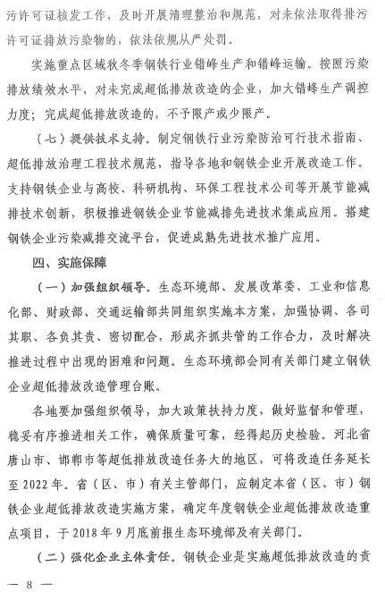 “實(shí)施重點(diǎn)區(qū)域秋冬季鋼鐵行業(yè)錯(cuò)峰生產(chǎn)和錯(cuò)峰運(yùn)輸。按照污染排放績(jī)效水平,對(duì)未完成超低排放改造的企業(yè),加大錯(cuò)峰生產(chǎn)調(diào)控力度;完成超低排放改造的,不予限產(chǎn)或少限產(chǎn)。”