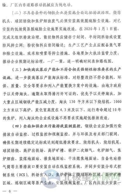“鋼鐵企業(yè)超低排放是指企業(yè)所有生產(chǎn)工序,含鐵礦采選、原料場(chǎng)、燒結(jié)、球團(tuán)、煉焦、煉鐵、煉鋼、軋鋼等以及大宗物料產(chǎn)品運(yùn)輸,均應(yīng)達(dá)到超低排放水平,包括大氣污染物有組織排放控制、無(wú)組織排放控制以及大宗物料運(yùn)輸排放控制。”