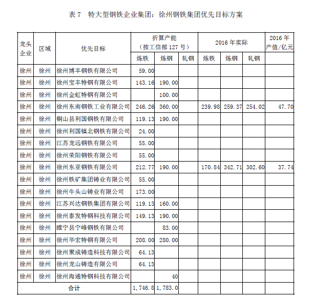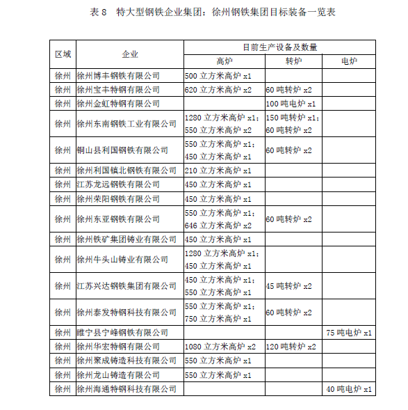 3家特大型鋼鐵企業(yè)集團(tuán):中天、沿海、徐州(2000萬噸以上)