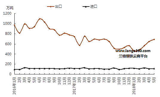 2、5月份我國(guó)鋼材出口量環(huán)比繼續(xù)回升   后期形勢(shì)仍較為嚴(yán)峻