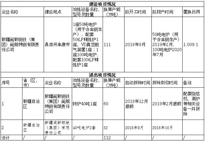 新疆閩新鋼鐵(集團)閩航特鋼有限責(zé)任公司建設(shè)項目產(chǎn)能置換方案