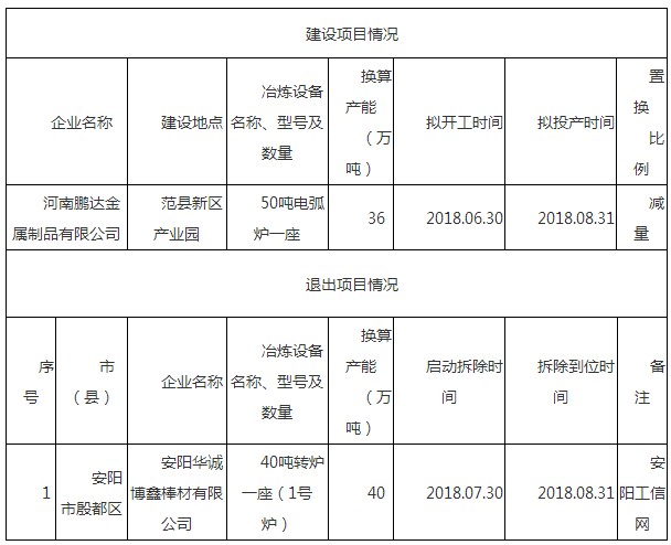 河南鵬達(dá)50噸電弧爐建設(shè)項目產(chǎn)能置換方案