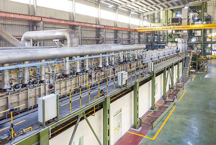 該線全部由西馬克集團提供。所有機械和工藝技術部件,包括加熱爐和氣刀系統(tǒng)、以及所有電氣自動化系統(tǒng)也全部來自西馬克集團。此外西馬克集團還負責安裝監(jiān)理及調試投產(chǎn)。