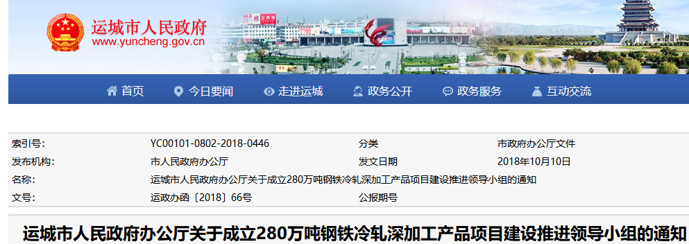 近期,燕鋼冷軋鋼板有限公司與我市(運城)溝通對接,擬在昇運公司現(xiàn)有場地基礎(chǔ)上,投資15億元建設(shè)年產(chǎn)280萬噸鋼鐵冷軋深加工產(chǎn)品項目,項目建成后,年可新增銷售收入130億元,利稅6億元。通過項目實施,能進一步延伸和完善我市鋼鐵產(chǎn)業(yè)深加工鏈條,優(yōu)化鋼鐵產(chǎn)品結(jié)構(gòu),逐步實現(xiàn)鋼鐵產(chǎn)品向高技術(shù)含量、高附加值轉(zhuǎn)型,對增強行業(yè)競爭力,加快建設(shè)中西部地區(qū)精品鋼生產(chǎn)基地具有積極意義。為使各項工作順利開展,加快項目落地,經(jīng)市人民政府研究,決定成立280萬噸鋼鐵冷軋深加工產(chǎn)品項目建設(shè)推進領(lǐng)導(dǎo)小組(以下簡稱市領(lǐng)導(dǎo)小組)?,F(xiàn)將有關(guān)事項通知如下: