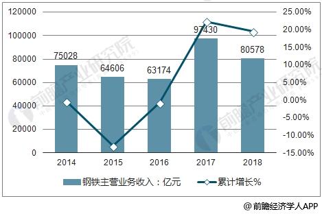 據(jù)前瞻產(chǎn)業(yè)研究院發(fā)布的《中國鋼鐵行業(yè)發(fā)展前景與投資戰(zhàn)略規(guī)劃分析報(bào)告》指出,2018上半年中國鋼鐵行業(yè)主營業(yè)務(wù)收入達(dá)到30525億元,累計(jì)增長15.8%?;仡?012-2017年鋼鐵行業(yè)營業(yè)收入情況:近六年來,我國鋼行業(yè)營業(yè)收入較為穩(wěn)定,2015年以來累計(jì)增長率逐漸回暖。中國鋼鐵行業(yè)將繼續(xù)保持穩(wěn)中有長趨勢,預(yù)計(jì)2018年中國鋼鐵行業(yè)營收將突破80000億元。