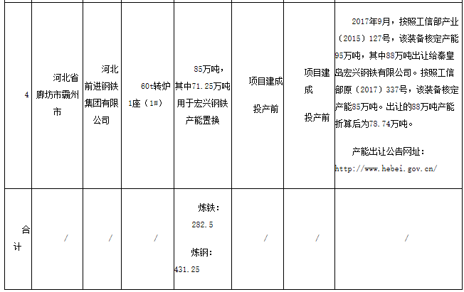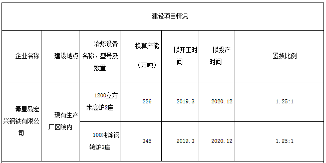 按照《國(guó)務(wù)院關(guān)于化解產(chǎn)能嚴(yán)重過剩矛盾的指導(dǎo)意見》《國(guó)務(wù)院關(guān)于鋼鐵行業(yè)化解過剩產(chǎn)能實(shí)現(xiàn)脫困發(fā)展的意見》和《鋼鐵行業(yè)產(chǎn)能置換實(shí)施辦法》要求,現(xiàn)將秦皇島宏興鋼鐵有限公司建設(shè)項(xiàng)目產(chǎn)能置換方案予以公示,歡迎社會(huì)公眾進(jìn)行監(jiān)督。公示期為2018年10月30日至2018年11月26日。聯(lián)系電話:0311-87800210。