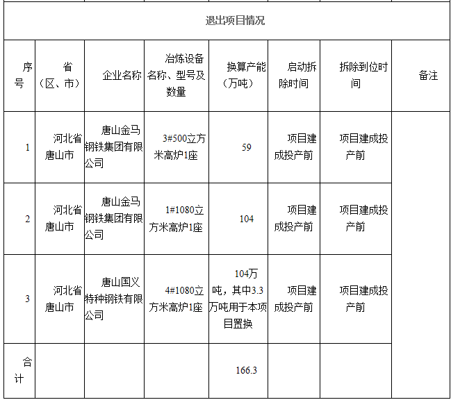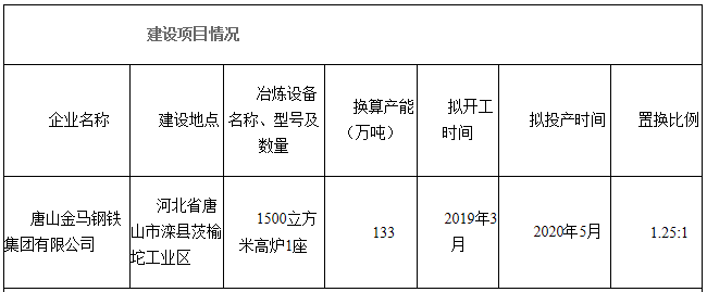 唐山金馬鋼鐵集團(tuán)有限公司建設(shè)項(xiàng)目產(chǎn)能置換方案公示