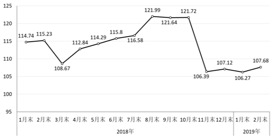 2月末,鋼鐵協(xié)會(huì)CSPI中國(guó)鋼材價(jià)格指數(shù)為107.68點(diǎn),環(huán)比上升1.41點(diǎn),升幅為1.33%;同比下降7.55點(diǎn),降幅為6.55%。(見下圖)