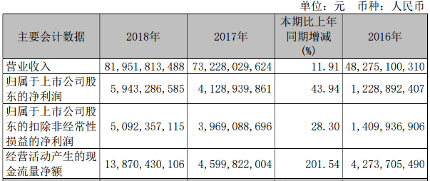 馬鋼股份3月21日晚間發(fā)布公告稱,公司2018年實現(xiàn)營業(yè)收入819.52億元,同比增長11.91%;歸屬于上市公司股東的凈利潤59.43億元,同比增長43.94%。
