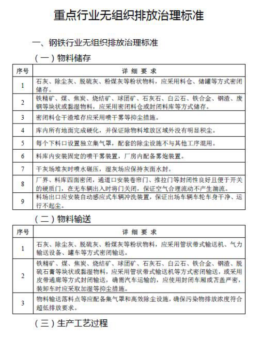 (一)明確治理范圍。2019年10月底前,全省范圍內(nèi)鋼鐵、水泥、火電、焦化、鑄造、耐火材料、有色冶煉、磚瓦窯等所有涉及無組織排放的工業(yè)企業(yè),完成物料運(yùn)輸、生產(chǎn)工藝、堆場(chǎng)環(huán)節(jié)的無組織排放深度治理,全面實(shí)現(xiàn)“五到位、一密閉”。