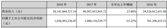 本鋼板材4月18日晚間發(fā)布公告稱,公司2018年實現(xiàn)營業(yè)收入201.82億元,同比增長23.88%;歸屬于上市公司股東的凈利潤10.36億元,同比下降35.22%。