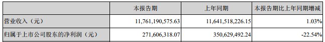 2019年第一季度實現(xiàn)歸屬于上市公司股東的凈利潤為2.72億元,同比下降22.54%。