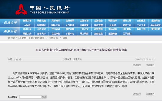 為貫徹落實(shí)國(guó)務(wù)院常務(wù)會(huì)議要求,建立對(duì)中小銀行實(shí)行較低存款準(zhǔn)備金率的政策框架,促進(jìn)降低小微企業(yè)融資成本,中國(guó)人民銀行決定從2019年5月15日開(kāi)始,對(duì)聚焦當(dāng)?shù)?、服?wù)縣域的中小銀行,實(shí)行較低的優(yōu)惠存款準(zhǔn)備金率。對(duì)僅在本縣級(jí)行政區(qū)域內(nèi)經(jīng)營(yíng),或在其他縣級(jí)行政區(qū)域設(shè)有分支機(jī)構(gòu)但資產(chǎn)規(guī)模小于100億元的農(nóng)村商業(yè)銀行,執(zhí)行與農(nóng)村信用社相同檔次的存款準(zhǔn)備金率,該檔次目前為8%。約有1000家縣域農(nóng)商行可以享受該項(xiàng)優(yōu)惠政策,釋放長(zhǎng)期資金約2800億元,全部用于發(fā)放民營(yíng)和小微企業(yè)貸款。(完)