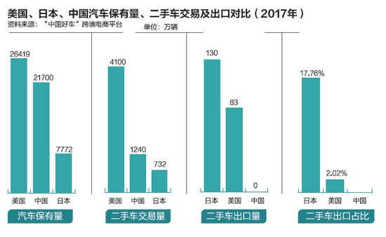 根據(jù)中國汽車流通協(xié)會統(tǒng)計,2018年中國二手車交易量達(dá)1382萬輛,不到新車銷量(2808萬輛)的一半。如按發(fā)達(dá)國家二手車交易量是新車銷量2倍,二手車出口是交易量10%以上測算,中國二手車出口發(fā)展?jié)摿艽蟆?/span>