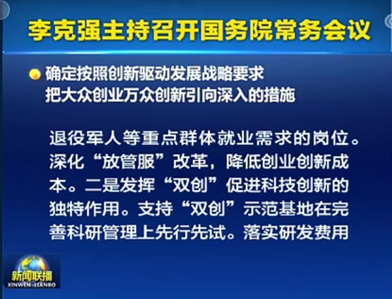 按照黨中央、國務(wù)院部署,為進(jìn)一步實施創(chuàng)新驅(qū)動發(fā)展戰(zhàn)略,更大激發(fā)市場主體活力,會議確定了把“雙創(chuàng)”引向深入的措施。一是發(fā)揮“雙創(chuàng)”支撐就業(yè)的重要作用,提供更多適應(yīng)高校畢業(yè)生、退役軍人等重點群體就業(yè)需求的崗位。深化“放管服”改革,制定《優(yōu)化營商環(huán)境條例》,降低創(chuàng)業(yè)創(chuàng)新成本。二是發(fā)揮“雙創(chuàng)”促進(jìn)科技創(chuàng)新的獨特作用。支持“雙創(chuàng)”示范基地在科研立項實施、成果確權(quán)和轉(zhuǎn)化等方面先行先試。加快落實研發(fā)費用按75%比例稅前加計扣除的政策,并研究加大政策力度。三是支持打造“雙創(chuàng)”平臺,推動大中小企業(yè)融通發(fā)展。完善股權(quán)、薪酬等激勵機制,促進(jìn)各類企業(yè)協(xié)同創(chuàng)新。四是推動“互聯(lián)網(wǎng)+”升級。加快發(fā)展工業(yè)互聯(lián)網(wǎng),拓展“互聯(lián)網(wǎng)+”在醫(yī)療、養(yǎng)老、教育等社會領(lǐng)域的應(yīng)用。五是引導(dǎo)金融機構(gòu)降低小微企業(yè)融資實際利率和綜合成本,將小微企業(yè)不良貸款容忍度從不高于各項貸款不良率2個百分點放寬到3個百分點。鼓勵風(fēng)投、創(chuàng)投加大對“雙創(chuàng)”的支持力度。支持創(chuàng)業(yè)孵化機構(gòu)、創(chuàng)投企業(yè)發(fā)債融資。