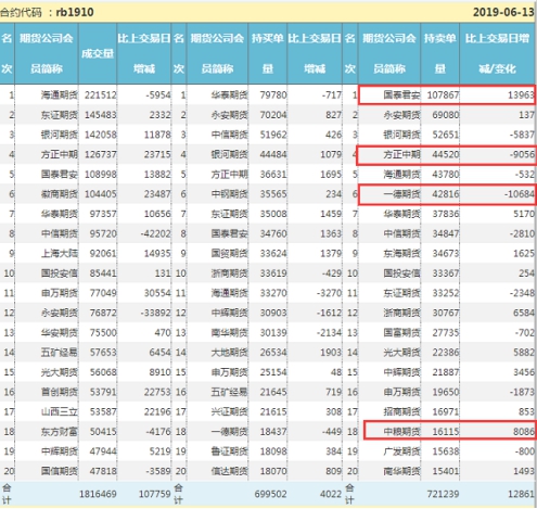礦石方面多頭大哥永安終于減倉了,雖然只有區(qū)區(qū)7千多手,但似乎與坊間傳說的20萬手限倉有微妙的聯(lián)系;多頭第三銀河增倉近9千手,似乎在努力追趕者第二名的位置;空頭方面安信大幅增倉近2萬手,從第五名一躍到空頭榜第二;銀河增倉1萬多手名次稍有提升;中信則減倉1.7萬手跌出前十。如此看來今天行情似乎空頭比多頭更活躍。