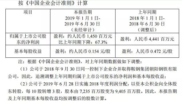 鞍鋼股份有限公司2019年半年度業(yè)績(jī)預(yù)告