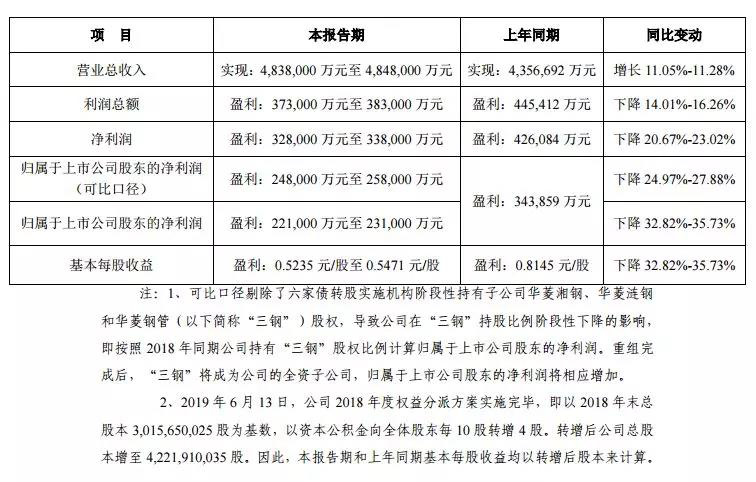 湖南華菱鋼鐵股份有限公司2019年半年度業(yè)績(jī)預(yù)告