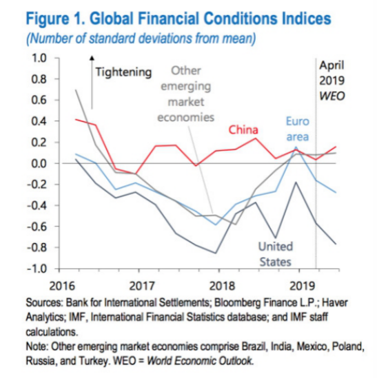 IMF還指出,全球金融條件的寬松在美國(guó)和歐元區(qū)尤為明顯,而中國(guó)金融條件的凈變化和其他主要新興市場(chǎng)經(jīng)濟(jì)體的總變化很小。