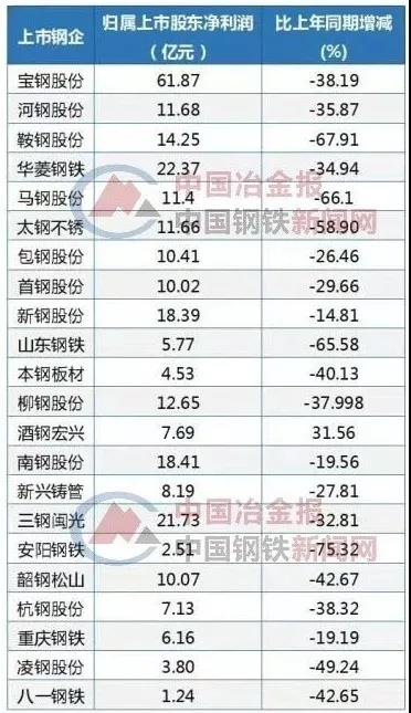 日前,30家上市鋼企半年報(bào)已經(jīng)全部披露完畢,寶鋼股份以1408.76億元的營(yíng)業(yè)收入和61.87億元的歸屬上市股東凈利潤(rùn)排在首位。半年報(bào)顯示,大多數(shù)鋼企凈利同比下滑。多家半年報(bào)顯示,鋼材售價(jià)下降、鐵礦石及燃料價(jià)格快速上漲是凈利潤(rùn)大幅下滑的主要原因。