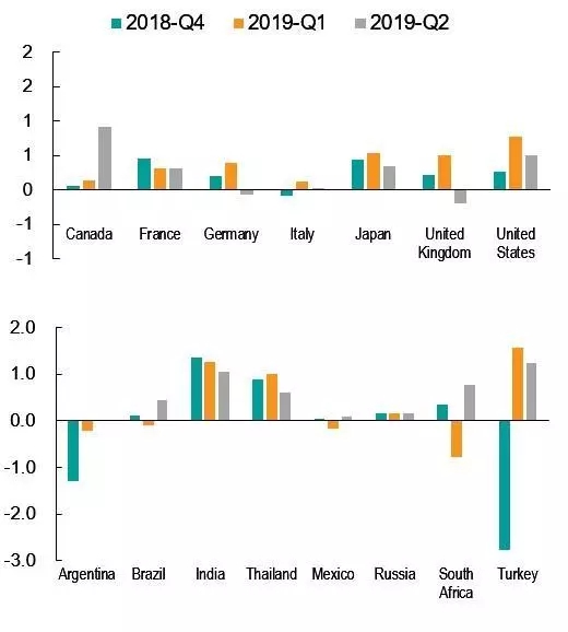 即使忽略最壞的下行風險,報告預(yù)計2019年全球經(jīng)濟增長率也將從2018年的3%降至2.3%。然而,一些大型新興經(jīng)濟體已經(jīng)陷入衰退,一些發(fā)達經(jīng)濟體(包括德國和英國)距離衰退僅一步之遙。