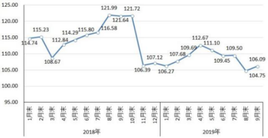 9月末,鋼鐵協(xié)會(huì)CSPI中國(guó)鋼材價(jià)格指數(shù)為106.09點(diǎn),環(huán)比上升1.34點(diǎn),升幅為1.28%;與上年同期相比下降15.55點(diǎn),降幅為12.78%。從全月情況看,9月份CSPI中國(guó)鋼材價(jià)格指數(shù)平均值為108.60點(diǎn),比8月份平均值下降0.30點(diǎn),降幅為0.28%。