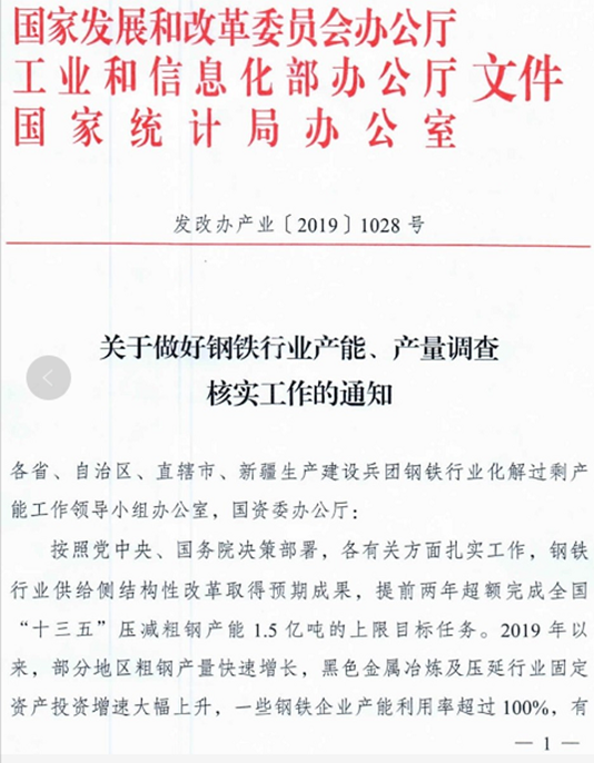 為鞏固鋼鐵行業(yè)去產(chǎn)能成果,日前,國家發(fā)展改革委、工信部以及國家統(tǒng)計(jì)局聯(lián)合發(fā)布《關(guān)于做好鋼鐵行業(yè)產(chǎn)能、產(chǎn)量調(diào)查核實(shí)工作的通知》,要求對鋼鐵企業(yè)近3年的裝備產(chǎn)能情況及變化情況進(jìn)行調(diào)查核實(shí),并說明情況。中國冶金報(bào)、中國鋼鐵新聞網(wǎng)小編經(jīng)向工信部相關(guān)人士核實(shí),該文件確實(shí)已經(jīng)下發(fā)。主要內(nèi)容如下: