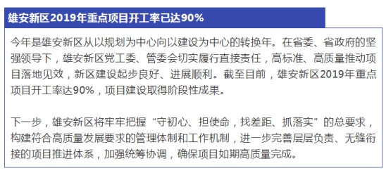 據(jù)雄安發(fā)布微信公眾號(hào)11月23日消息,截至目前,雄安新區(qū)2019年重點(diǎn)項(xiàng)目開(kāi)工率達(dá)90%,項(xiàng)目建設(shè)取得階段性成果。下一步將構(gòu)建符合高質(zhì)量發(fā)展要求的管理體制和工作機(jī)制,進(jìn)一步完善層層負(fù)責(zé)、無(wú)縫銜接的項(xiàng)目推進(jìn)體系,加強(qiáng)統(tǒng)籌協(xié)調(diào),確保項(xiàng)目如期高質(zhì)量完成。