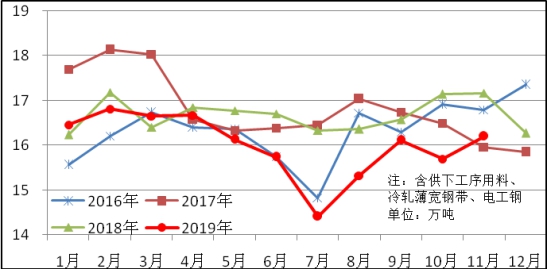 11月份生產(chǎn)鍍錫板10萬噸,比上年同期減少1萬噸,下降11.4%;彩涂板11萬噸,同比減少1萬噸,下降9.6%;電工鋼板帶68萬噸,比上年同期增加4萬噸,下降6.8%。。
