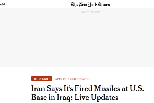 美國(guó)《紐約時(shí)報(bào)》稱(chēng),伊朗方面表示,其向美軍基地發(fā)射了導(dǎo)彈。
