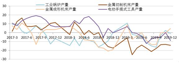 其他通用機(jī)械產(chǎn)品方面,金屬切削機(jī)床、金屬成形機(jī)床、電動(dòng)手提式工具、工業(yè)鍋爐幾類產(chǎn)品產(chǎn)量近幾個(gè)月以來也出現(xiàn)逐步回暖的態(tài)勢,或降幅收窄,或同比轉(zhuǎn)正。