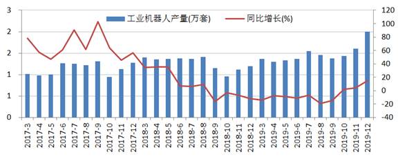 我國工業(yè)機(jī)器人產(chǎn)量經(jīng)歷了高速增長期,2018年9月產(chǎn)量增速由正轉(zhuǎn)負(fù),此后延續(xù)了13個(gè)月的負(fù)增長,2019年10月增速轉(zhuǎn)正。2019年12月,工業(yè)機(jī)器人產(chǎn)量2.0萬套,同比增長15.3%,已連續(xù)兩個(gè)月回升,行業(yè)出現(xiàn)改善跡象。