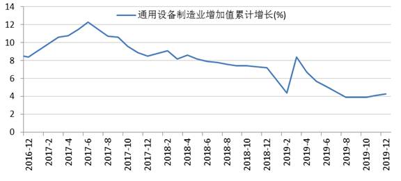 通用設(shè)備制造業(yè)增加值增速近三年總體呈下滑趨勢,2019年1-12月,通用設(shè)備制造業(yè)增加值同比增長4.3%,較2018年下滑2.9個(gè)百分點(diǎn),但較1-11月回升0.2個(gè)百分點(diǎn),在10月份觸及低點(diǎn)后,已連續(xù)兩個(gè)月回升。